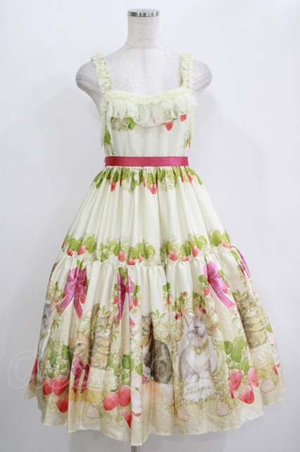 BAROQUE / Strawberry field’s Cats イチゴ畑の猫たちジャンパースカート M 生成り H-25-11-01-011-EL-OP-NS-ZH