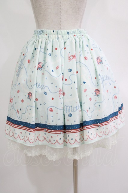 axes femme / シェルプリントスカート M サックス H-25-11-01-037-AX-SK-NS-ZH