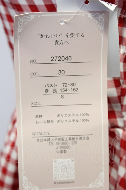 Cherirulu Chocola / ギンガムチェックジャンパースカート S 赤Xシロ T-25-10-25-014-LO-OP-SA-ZT