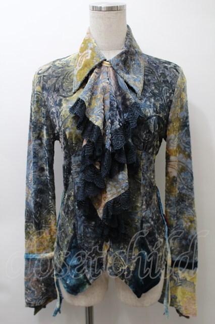 Ozz On / ベロア切替柄シャツ サックス S-25-10-24-1023-OO-BL-AS-ZS [2100020000032940-S-25-10-24-1023-OO-BL-AS-ZS]