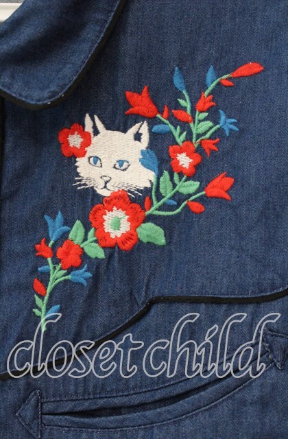Candy Stripper / ねこ刺繍デニム風ブラウス インディゴ O-25-10-25-059-PU-BL-IG-OS [2100080000062347-O-25-10-25-059-PU-BL-IG-OS]