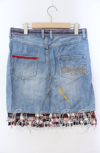 Candy Stripper / ボアワッペンデニムスカート ライトインディゴ O-25-10-25-024-PU-SK-IG-OS