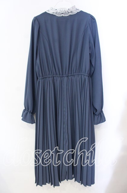 m petit by misako / AM*レースエリプリーツワンピース L ブルー O-25-10-25-054-LO-OP-IG-OS