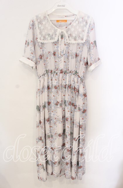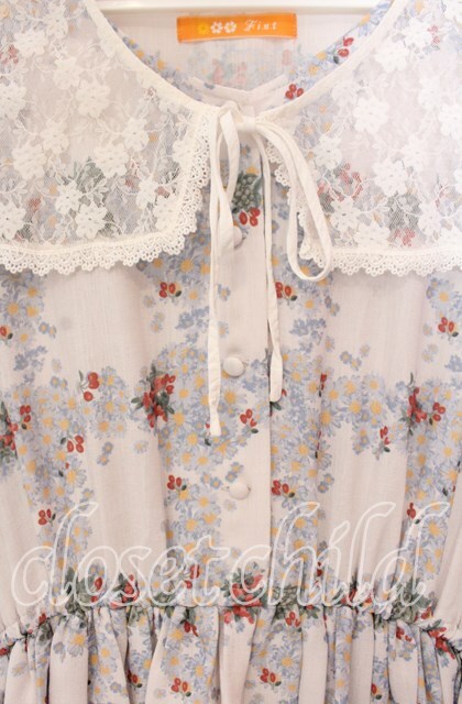 Fi.n.t / レース付け衿レトロフラワーチェック柄ワンピース アイボリー×ブルー O-25-10-25-068-CA-OP-IG-OS