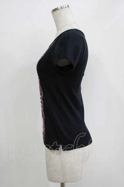 Angelic Pretty / グリッターリボンレースプリントTシャツ Free ブラック/ピンク H-25-11-02-1065-AP-TS-NS-ZH
