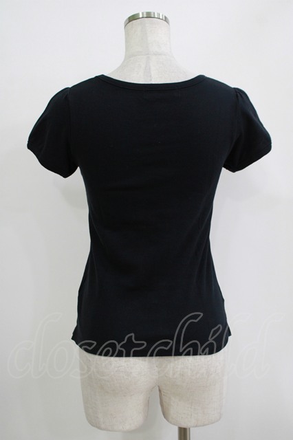 Angelic Pretty / グリッターリボンレースプリントTシャツ Free ブラック/ピンク H-25-11-02-1065-AP-TS-NS-ZH [2100030000076391-H-25-11-02-1065-AP-TS-NS-ZH]