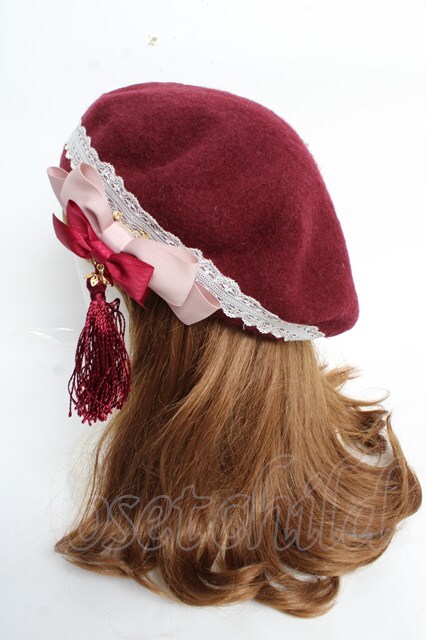 Amavel / 月夜の狐と寒椿和風ベレー帽 ボルドー Y-25-10-28-055-CA-AC-SZ-ZY