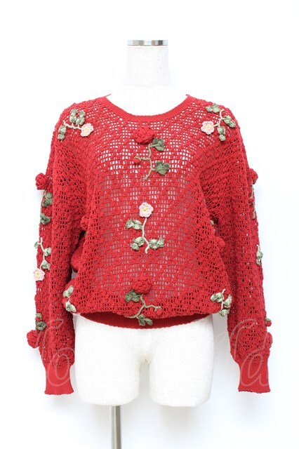 WONDERFUL WORLD / フラワーモチーフニット 赤 Y-25-10-28-073-LO-TO-SZ-ZY [2100070000036025-Y-25-10-28-073-LO-TO-SZ-ZY]