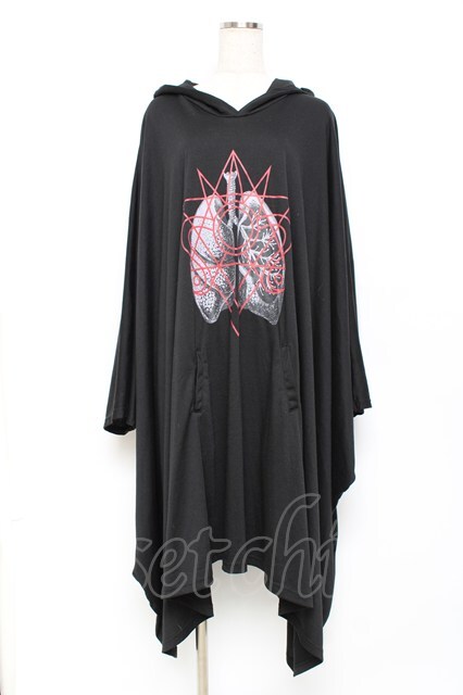 Drug Honey / クリスタル線画x写実的臓器ドレープポンチョワンピース 黒 Y-25-10-28-112-PU-OP-SZ-ZY [2100070000052561-Y-25-10-28-112-PU-OP-SZ-ZY]