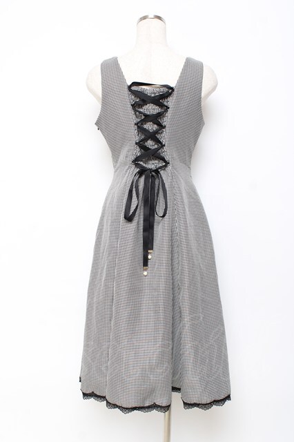 axes femme / 編み上げ千鳥格子ジャンスカ F 黒 Y-25-10-28-124-AX-OP-SZ-ZY