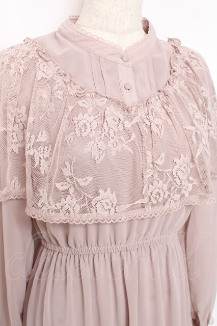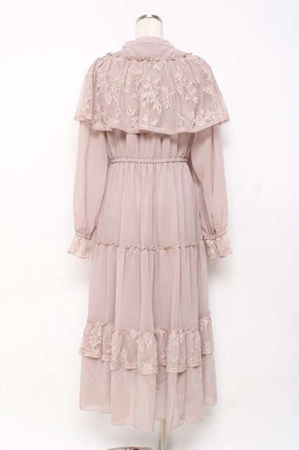 axes femme / レースケープティアードワンピース M モカ Y-25-10-28-125-AX-OP-SZ-ZY