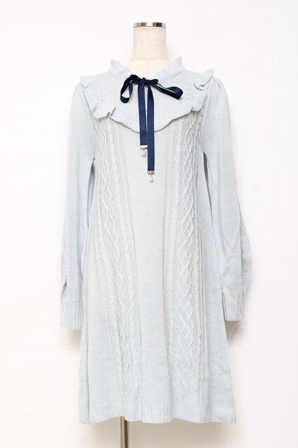 axes femme / ヨーク切替ニットワンピ F サックス Y-25-10-28-132-AX-OP-SZ-ZY