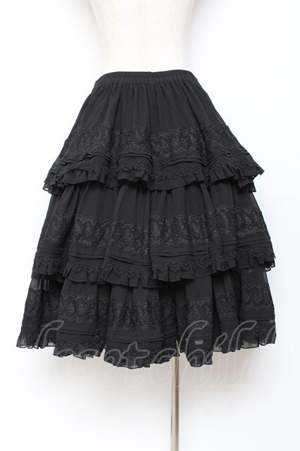 Hoshibako Works / 七色ワルツチュールフリルアンダースカート 黒 Y-25-10-28-149-LO-SK-SZ-ZY