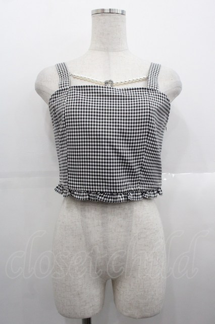 Ank Rouge / ハートパールギンガムチェックトップス 黒X白 I-25-10-24-071-CA-TO-SA-ZI