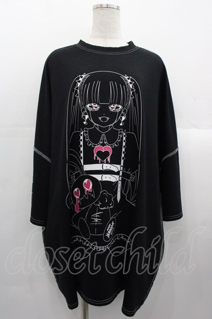 VOLCAN&APHRODITE / ハーネスGIRLステッチTシャツ 黒X白 I-25-10-24-085-PU-TO-SA-ZI [2100060000044137-I-25-10-24-085-PU-TO-SA-ZI]
