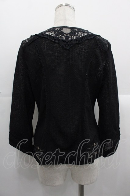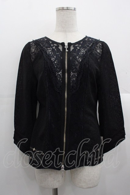 Rozen Kavalier / レース切り替え透かし封ZIPカーディガン 黒 I-25-10-24-080-OO-TO-SA-ZI [2100060000043586-I-25-10-24-080-OO-TO-SA-ZI]