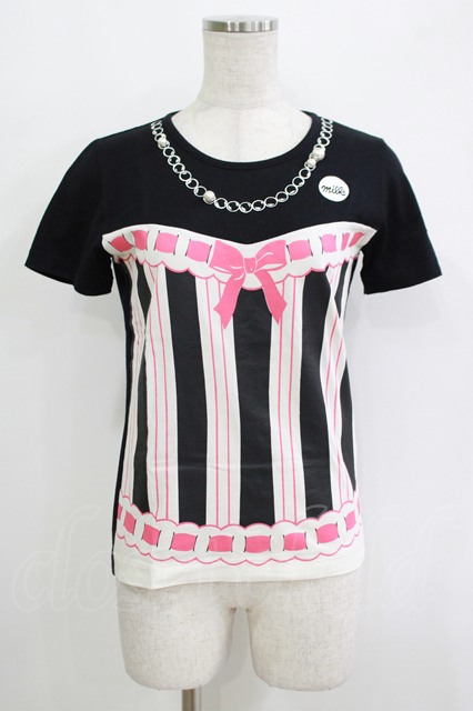 MILK / トロンプルイユカットソー 黒 H-25-11-03-070-ML-TO-KB-ZH