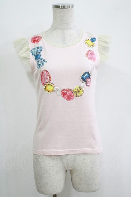 Emily Temple cute / パールジュエリーチュールフリルタンク ピンク H-25-11-03-076-ET-TO-KB-ZH [2100030000076420-H-25-11-03-076-ET-TO-KB-ZH]