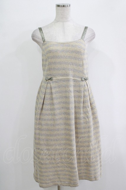 Emily Temple cute / ラメボーダーノースリーブワンピース ベージュ H-25-11-03-017-ET-OP-KB-ZH