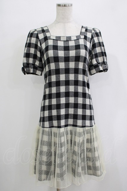 Emily Temple cute / 裾チュールギンガムワンピース ブラック H-25-11-03-031-ET-OP-KB-ZH