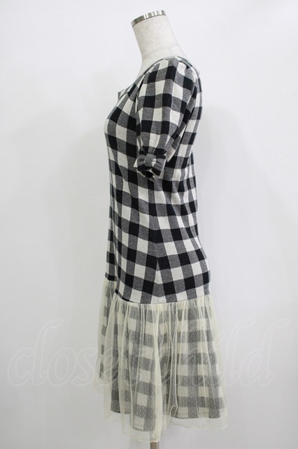 Emily Temple cute / 裾チュールギンガムワンピース ブラック H-25-11-03-031-ET-OP-KB-ZH [2100030000076411-H-25-11-03-031-ET-OP-KB-ZH]