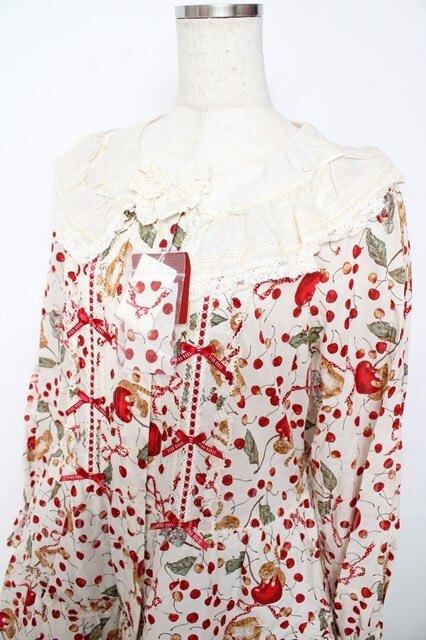 PINK HOUSE / キャットチェリードロッププリントワンピース F 生成り Y-25-10-31-063-LO-OP-AS-ZY