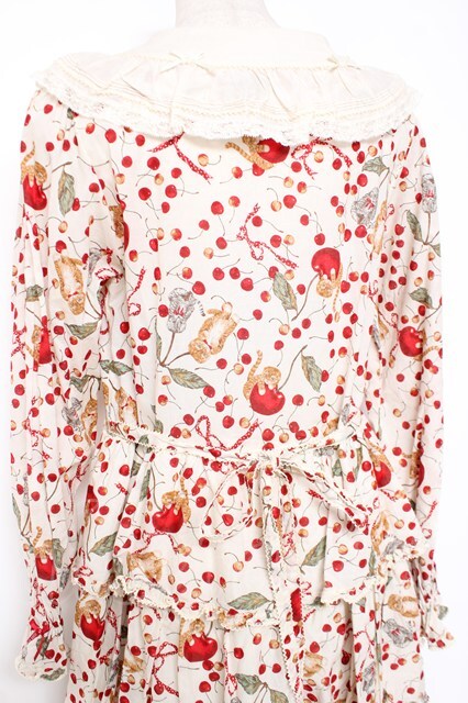 PINK HOUSE / キャットチェリードロッププリントワンピース F 生成り Y-25-12-20-084-LO-OP-AS-ZY
