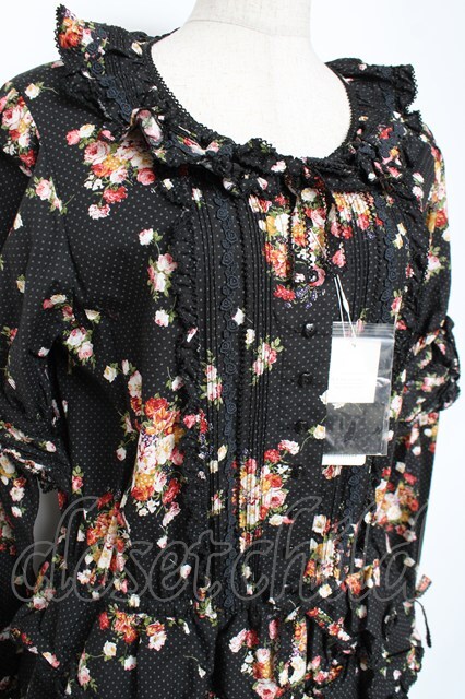 PINK HOUSE / ブルーミングドット柄襟付きワンピース F 黒 Y-25-12-20-089-LO-OP-AS-ZS
