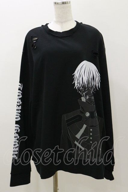 QOOZA / 東京喰種×QOOZA金木研 ダメージスウェット ブラック H-25-11-04-043-PU-TO-KB-ZH