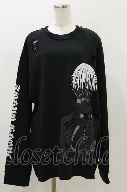 QOOZA / 東京喰種×QOOZA金木研 ダメージスウェット ブラック H-25-11-04-048-PU-TO-KB-ZH
