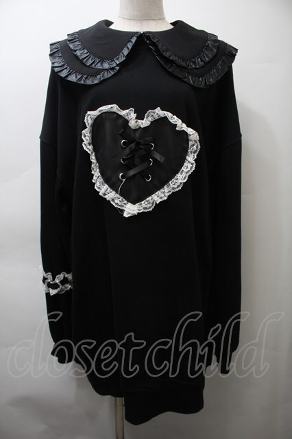 Jamie エーエヌケー / ガーター付きハートプルオーバー 黒 S-25-10-26-033-LO-ZA-HR-ZS