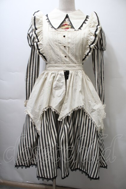 仲夏物語 / エプロン付きストライプワンピース オフx黒 S-25-10-26-035-EL-OP-AS-ZS
