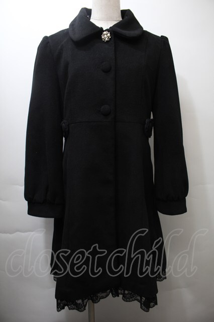 axes femme / 裾レースビジューボタンコート 黒 S-25-10-26-049-AX-CO-HR-ZS [2100020000032632-S-25-10-26-049-AX-CO-HR-ZS]