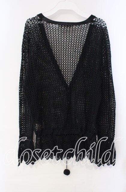 KANEKO ISAO / 透かし編みぽんぽん付きカーディガン ブラック O-25-10-28-074-EL-TO-IG-OS [2100080000052653-O-25-10-28-074-EL-TO-IG-OS]