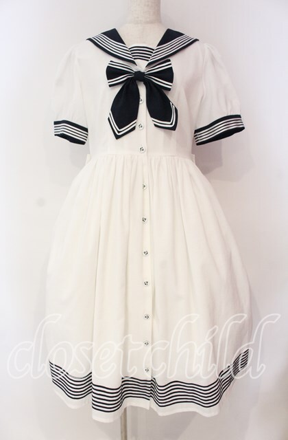 La Vie en Rose(海外ロリィタ) / セーラーワンピース M シロ×ネイビー O-25-10-28-016-LO-OP-IG-OS