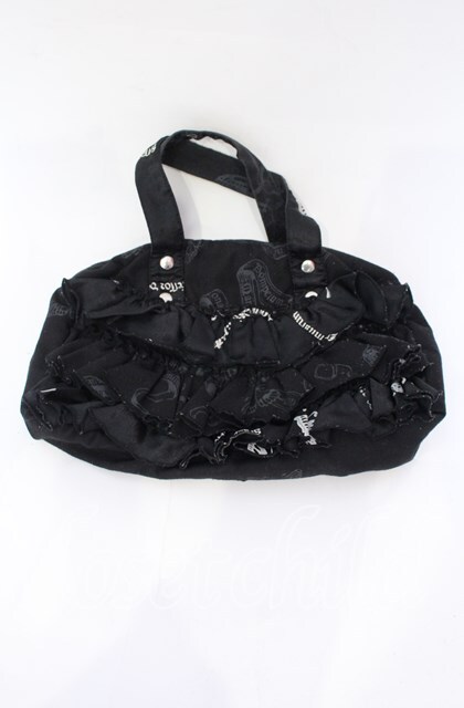 h.naoto Blood / オリジナルプリントティアードバッグ ブラック O-25-10-28-004-HN-BG-IG-OS