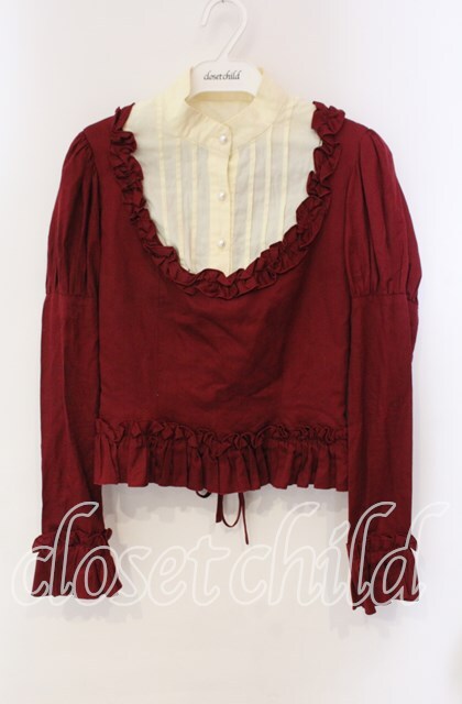 Pina sweetcollection / ヨーク襟フリルシャーリングプルブラウス ワイン×生成り O-25-10-28-088-LO-BL-IG-OS [2100080000062468-O-25-10-28-088-LO-BL-IG-OS]