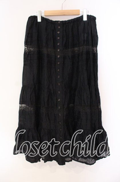 PINK HOUSE / ローズレース切り替えローンスカート クロ O-25-10-28-026-LO-SK-IG-OS