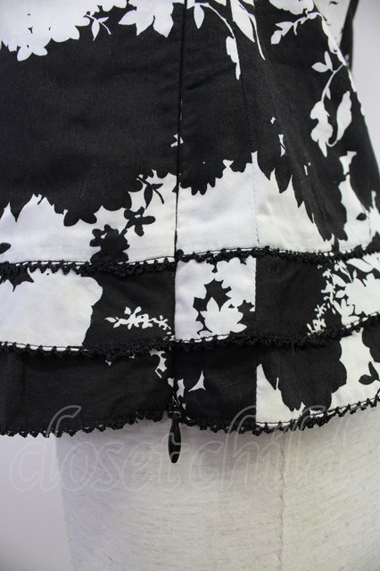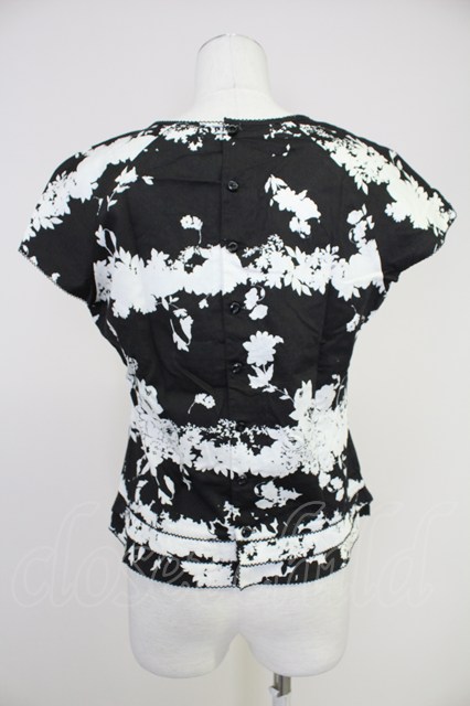 INGEBORG / シルエットフラワーブーケ半袖ブラウス M 黒X白 T-25-10-30-014-LO-BL-SA-ZT
