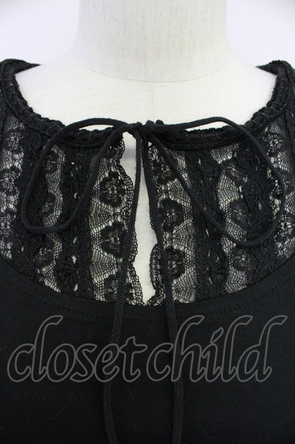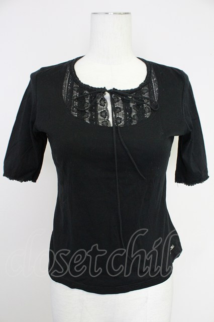 INGEBORG / レースラウンド切り替えカットソー S 黒 T-25-10-30-019-LO-TO-SA-ZT