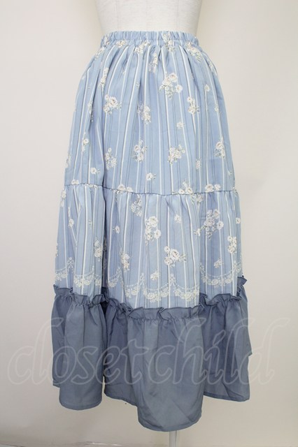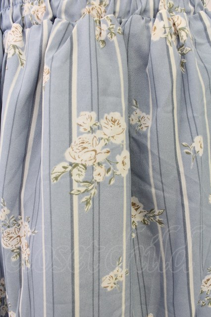 axes femme / フラワーストライプスカート サックスX白 T-25-10-30-037-AX-SK-SA-ZT