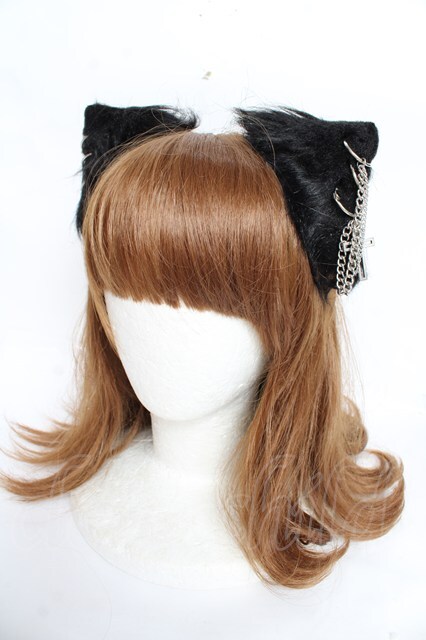 NOVESSEL / クロスチェーンリングピアス付き猫耳ヘアピン 黒 Y-25-11-01-022-PU-ZA-SZ-ZY [2100070000052646-Y-25-11-01-022-PU-ZA-SZ-ZY]