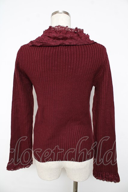 axes femme / レースネックニットトップス ワイン Y-25-11-01-042-AX-TO-SZ-ZY
