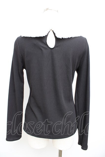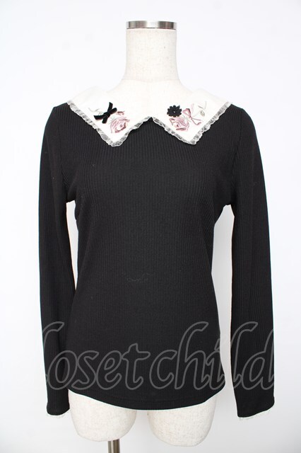 axes femme POETIQUE / 薔薇刺繍入りブラウス風プルオーバー M 黒 Y-25-11-01-054-AX-TO-SZ-ZY