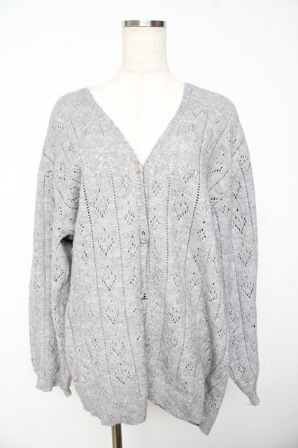 axes femme POETIQUE / ハート透かし編みニットカーディガン グレー Y-25-11-01-060-AX-TO-SZ-ZY
