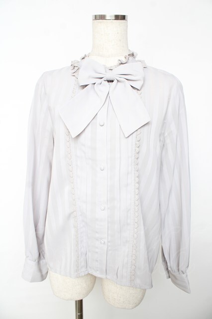 axes femme kawaii / ストライプリボンブラウス M グレー Y-25-11-01-065-AX-BL-SZ-ZY [2100070000052636-Y-25-11-01-065-AX-BL-SZ-ZY]