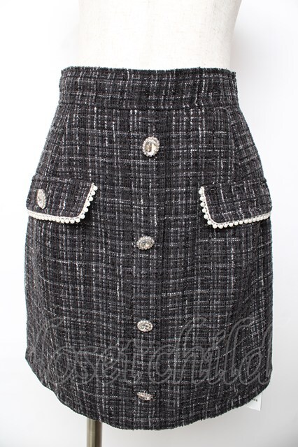 Ank Rouge / フロントビジューツイードミニスカート M 黒 Y-25-11-01-135-CA-SK-SZ-ZY
