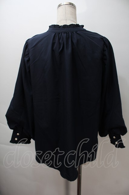 axes femme / ボリュームスリーブブラウス 紺 S-25-10-29-025-AX-BL-AS-ZS