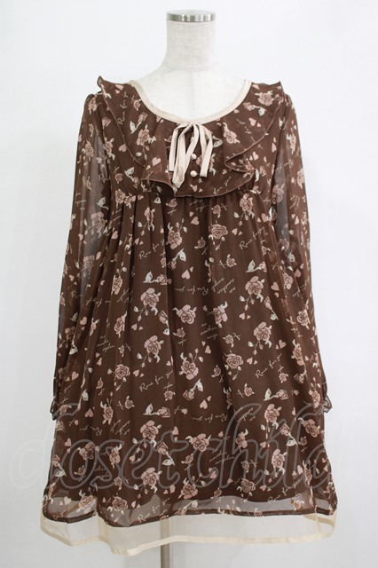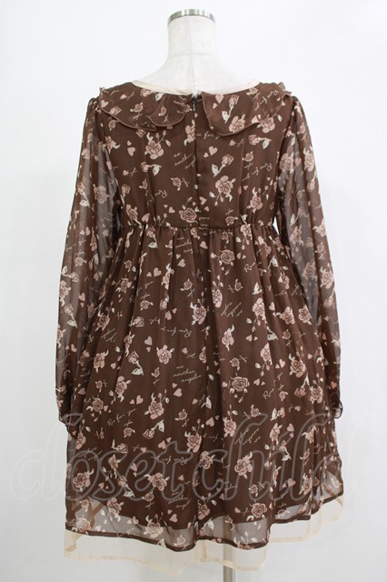an another angelus / ローズプリントシフォンワンピース Free ブラウン H-25-11-06-036-CA-OP-NS-ZH