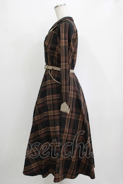 an another angelus / ダブルオープンカラーチェックワンピース Free BROWN H-25-11-06-004-CA-OP-NS-ZH